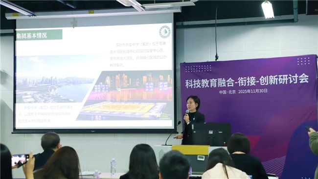 深圳市新安中学(集团)高中部副校长、中学数学高级教师从文娟以《科创赋能成长 智慧点亮未来》为题,聚焦高中阶段科创教育落地实践,分享了该校在科创课程体系构建、教学资源整合、学生创新能力培养等方面的具体探索,为中学阶段科创教育的常态化开展提供了宝贵经验。