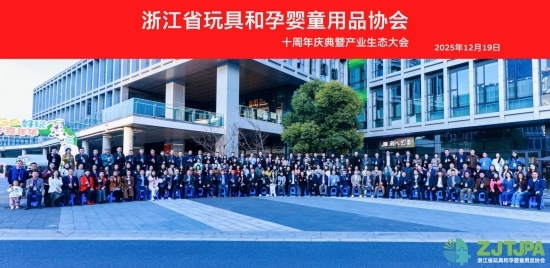 2025年12月19日,浙江省玩具和孕婴童用品协会成立十周年庆典暨行业创新发展大会在杭州隆重召开。本次大会以“十年弄潮,浙育新篇”为主题,开启了观潮·回望,领潮·重构,弄潮·深耕,成潮·交融这四大篇章。现场,汇聚国内外行业精英、政府代表及产业链上下游主体,旨在立足国际视野、全国格局与浙江产业带优势,系统地回顾了十年行业发展成就,精准地研判产业趋势,共同擘画未来十年高质量发展蓝图,为全国玩具孕婴童产业转型升级注入浙江动能。
