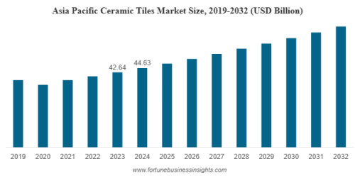 全球瓷砖市场正呈现“总量增长,格局分化”的态势。根据 Fortune Business Insights 的研究,全球瓷砖市场规模在2024年约为8330亿美元,预计到2032年将以约4.6%的年复合增长率持续扩大至1189.6亿美元,增长动力主要来自以亚太地区(占2024年全球收入47.78%)为代表的城市化进程。