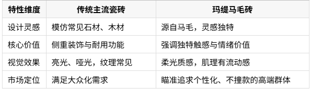 玛缇马毛砖与传统瓷砖的核心差异: