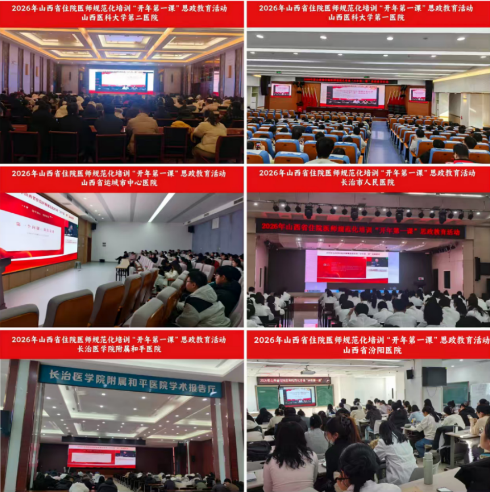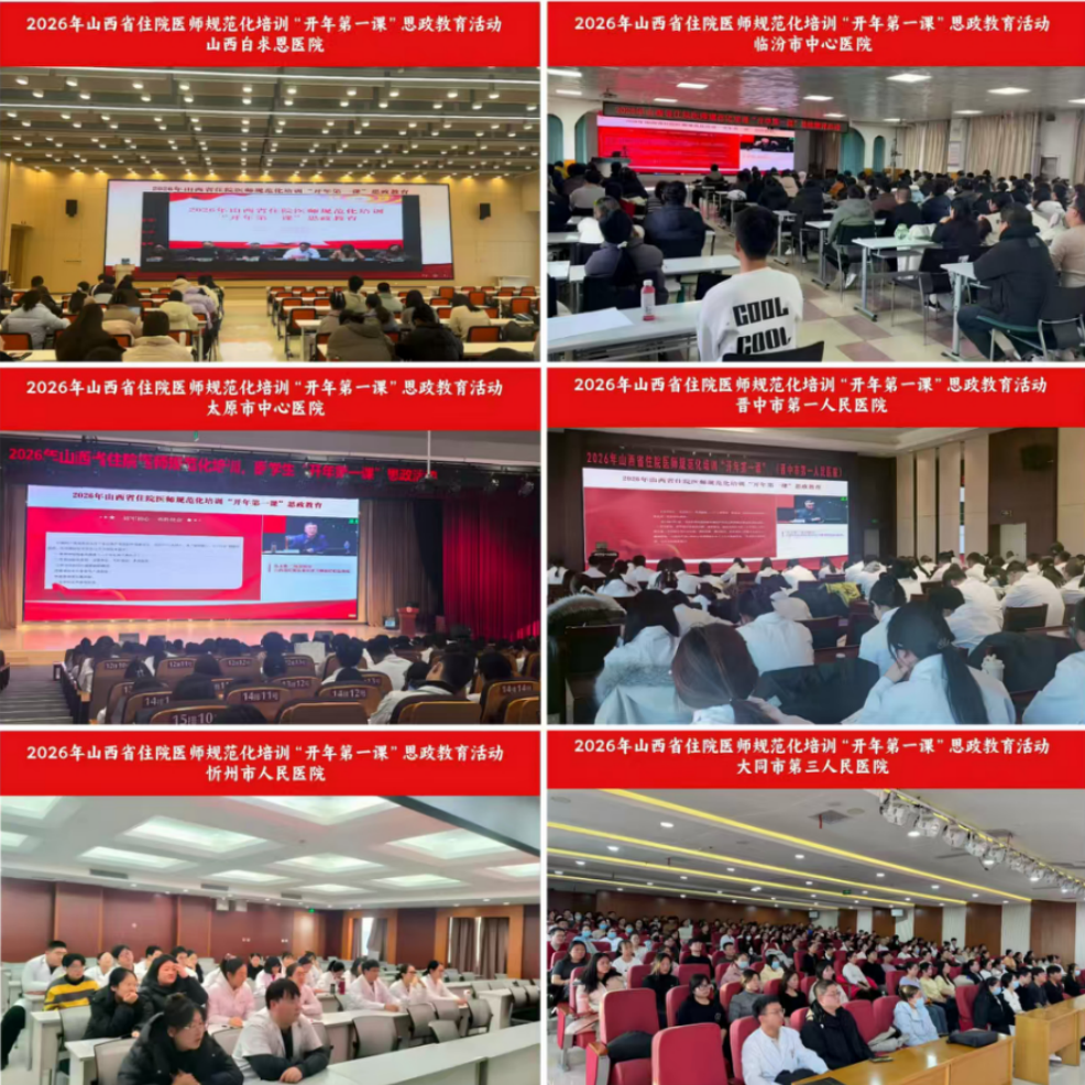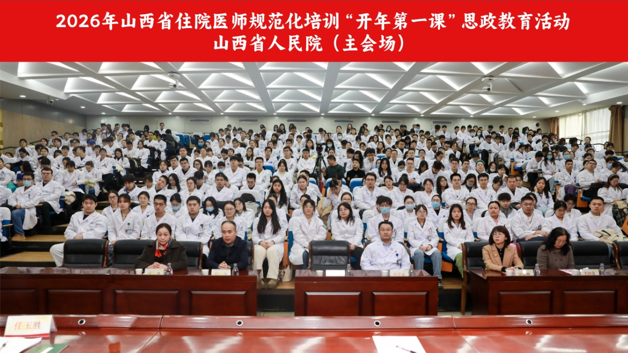 2026年1月6日,由山西省卫生健康委员会主办、山西卫生健康职业学院(山西省住培管理中心)承办的住院医师规范化培训“开年第一课” 思政教育活动在主会场(山西省人民医院)圆满举办。本次活动以“铸牢初心 勇担使命 重整行装再出发——新时代住院医师的责任与担当”为主题,采取“线下集中授课+线上直播”相结合的方式,线下覆盖住院医师及并轨研究生约400人,住培办全体教职员工共同参与;线上同步面向全省住院医师规范化培训学员及助理全科培训学员,共计覆盖学员7000余人,形成了广泛参与、同步学习的热烈氛围。