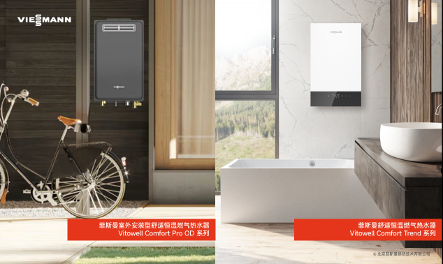 依托百年供热技术,针对中国家庭多元化的热水使用需求,菲斯曼在2025年还推出了以” 精准恒温、澎湃水量”为核心的燃气热水器新品:大升数机型Vitowell Comfort Trend 24L凭借水量伺服器与PID恒温算法,实现全屋多点供水温度精准稳定;室外机型Vitowell Comfort Pro OD系列则突破安装环境限制,兼顾室内空间节约与户外极端天气下的安全稳定运行。