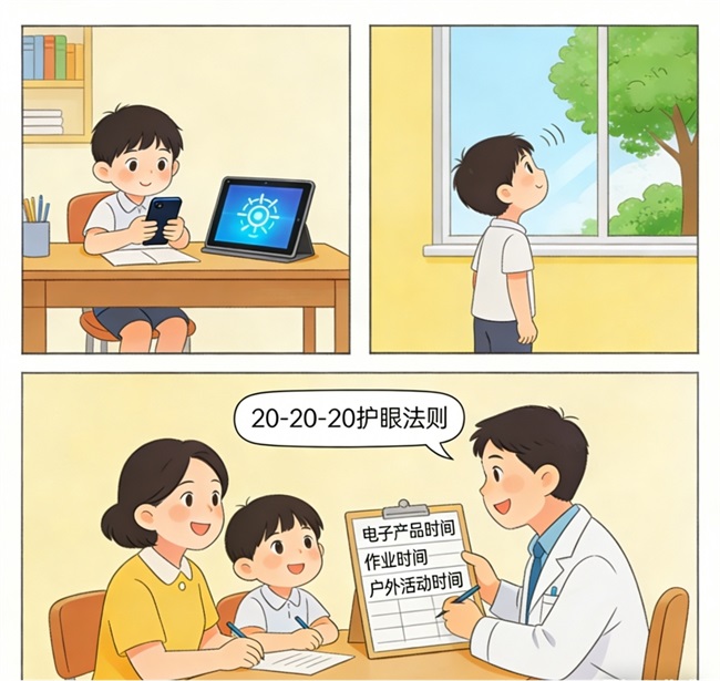 当前,电子产品已成为孩子寒假生活的重要组成部分,如何科学管控孩子的屏幕使用时间、保护视力,是家长们最关心的问题。对此,朱健华主任表示,科学用眼核心是要遵循‘20-20-20’护眼法则,即每近距离用眼20分钟,就抬头看20英尺(约6米)外的物体20秒,让眼睛得到及时放松。要严格控制孩子单次使用电子产品的时长不超过20分钟,避免连续长时间用眼;使用电子产品时,屏幕亮度需与环境亮度匹配,避免强光直射屏幕或在昏暗环境下使用。