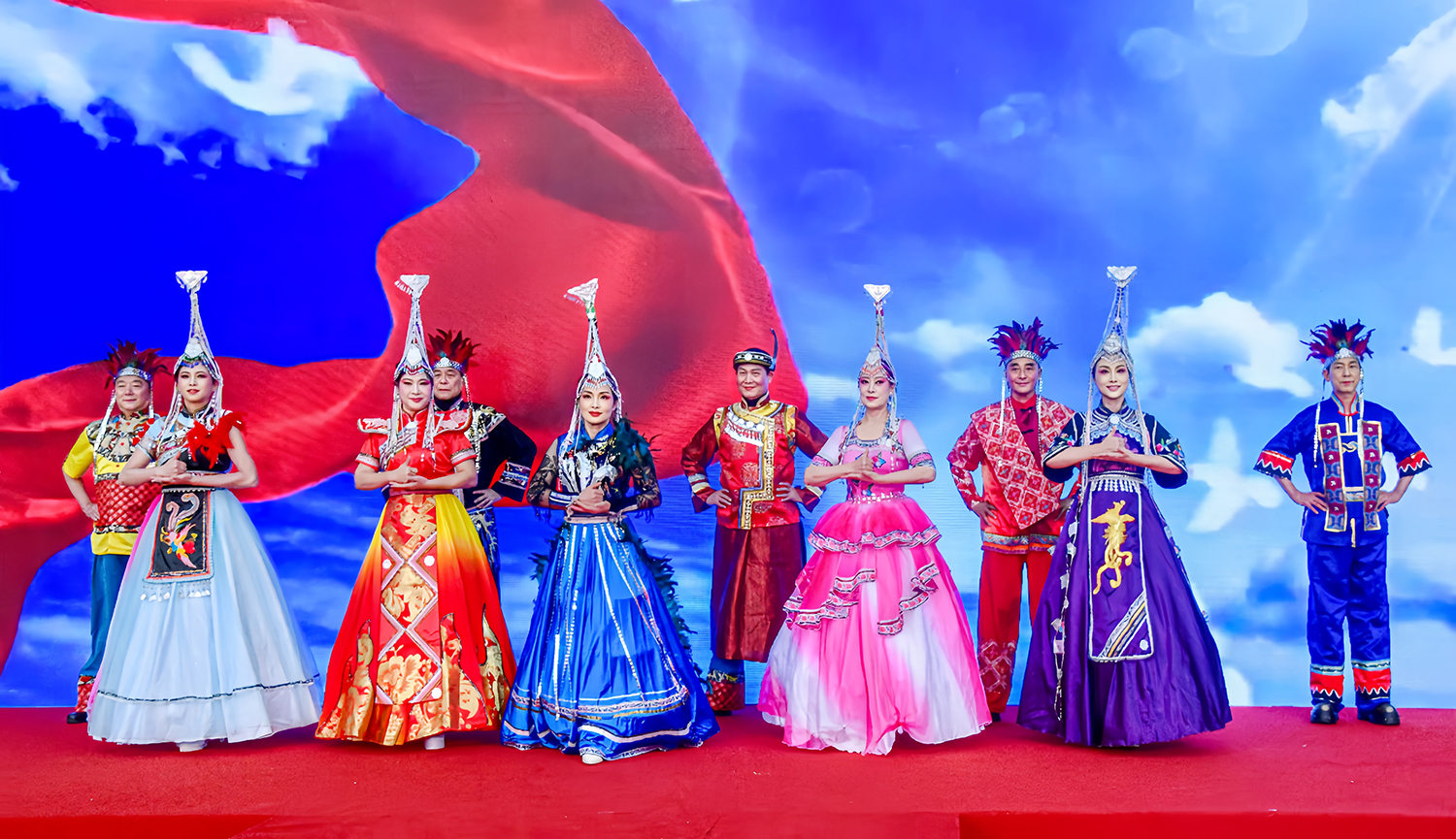 海峡风情画卷:《服绘海峡》惊艳开场。作为整场演出的压轴重头戏,松涛艺术团精心创意编导的大型服饰秀《服绘海峡》一登台,便以磅礴气势与细腻质感震撼全场。这部作品深耕海峡两岸文化根脉,以服饰为流动的载体,匠心融合两岸特色文化元素,缓缓勾勒出一幅意蕴悠长的两岸风情长卷:洁白的茉莉花与水仙花元素点缀服饰,交相辉映间,尽展八闽山水的灵秀雅致;喜庆的红色系服饰错落点缀,笔墨间生动诠释了福建“福”文化的深厚底蕴,每一件服饰、每一处细节,都成为两岸文脉相依、血脉相连的生动见证。舞台之上,福建非遗文化瑰宝轮番绽放光彩、惊艳四座:畲族标志性的凤凰装,色彩艳丽、纹样繁复,承载着畲乡儿女的美好期许;泉州蟳埔女的簪花围,繁花缀鬓、风情独具,将渔家女子的灵动温婉展现得淋漓尽致;福州独具特色的三条簪服饰,雅致温婉、韵味悠长,镌刻着闽都古城的人文底蕴。这些非遗服饰与台湾省高山族传统服饰同台辉映、相得益彰,演员们身着特色服饰款款前行,步履轻盈如针线穿梭,缓缓绘就一幅跨越海峡、情牵两岸的锦绣画卷,深刻诠释了“针线缝两岸,中华一家亲”的深厚内涵,每一个步伐、每一个身姿,都赢得现场观众雷鸣般的掌声与发自内心的赞叹。