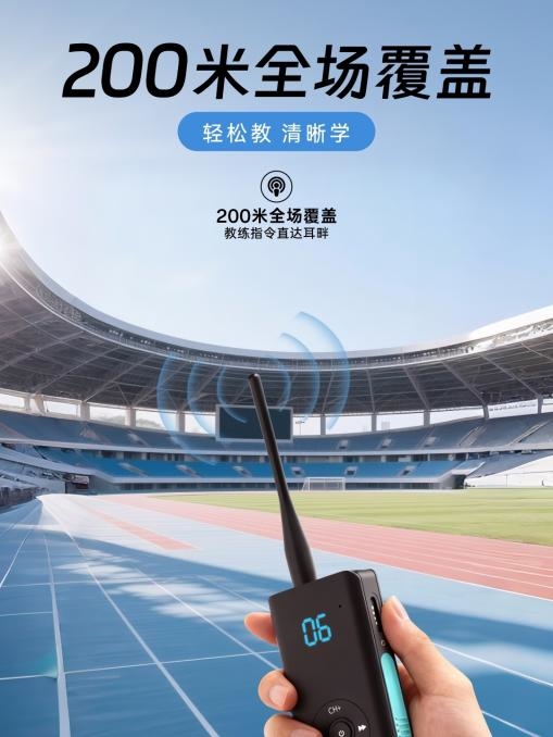 这套系统由发射主机鲸语T1与接收耳机鲸语L1组成。教练手持T1发射机讲话,声音实时传输至运动员佩戴的L1耳机中——即时指导,指令即达,超200米全场地覆盖,距离不再是沟通的障碍。教练无需再追着运动员跑,只需站在最佳观察位,实时纠偏、实时调整战术,真正实现“训练掌控全场”。