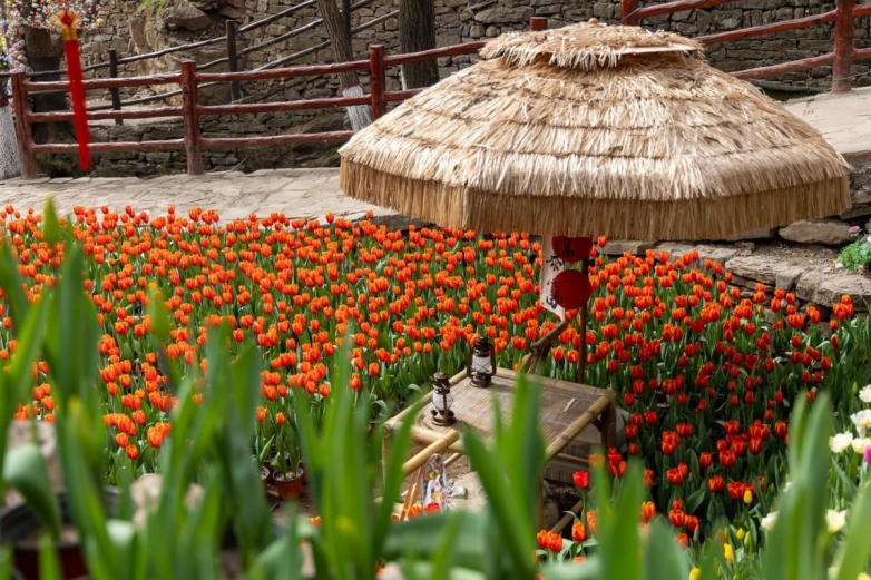 景区依托神仙峪郁金香花海与牡丹园两处核心观赏区,精心增设了多处文化打卡场景。神仙峪浴池旁,花船泛溪,婉约灵动;牡丹园内,莫奈花园油画调色盘装置为春日景区增添了别样色彩。这些场景与天然花丛相映成趣,既提升了拍照出片率,也有效激发了游客的打卡热情。
