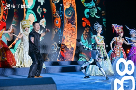 活动开场便将氛围拉满,广西民族舞团身着壮族特色盛装,吹奏芦笙等民族乐器,穿插壮乡原生态山歌清唱,还原了最纯粹的民俗烟火气,让现场观众沉浸式感受传统文化的魅力。随后快手健康达人@德康张刚佑身着壮族服饰登场,伴着山歌旋律与现场观众互动,正式拉开活动序幕。他带领舞团完整演绎五禽戏,每一个动作都彰显中式养生精髓,承载着非遗传承的深厚底蕴。