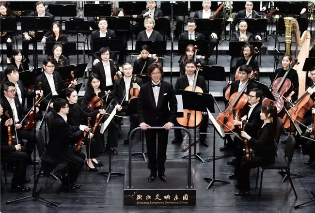 在赵晓鸥指挥潇洒自如的执棒下,乐团以细腻的演绎和磅礴的气势将观众带入跨越千年的文明之旅。作品旋律优美有张力,具有浓郁的丝路文化特色和中国风格,传达出动人的情感,既有对历史的深情回顾,也有对未来的美好展望。作品中既运用了手鼓等丰富元素,展现出浓郁的异域风情,也在乐章中借助中提琴独奏、小提琴独奏段落展现出优美婉转的东方情韵,音乐织体层次丰盈、技法醇熟,把艰难跋涉的“探路者”“开拓者”心境演绎得细腻动人;扬帆启航、披星戴月行进的浩大船队,气势浩荡地与风浪搏斗,描绘出人们搏浪前行、探索世界的壮丽景象,展示了人类探索未知、勇往直前的决心与勇气;昂扬、欢庆的中国式旋律,伴随着坚定有力、始终保持向前动力势能的齐奏,迎来辉煌的收尾。作品既对实际的“地域之路”进行风格性描绘,也对折射出的“精神之路”有着丰富的情感性、艺术性表达。西方调式与中国五声调式、西域元素交织融合,贯穿作品的主题在分裂发展后再次回归形成首尾呼应,乐队气势恢弘地奏响在“一带一路”倡议下求和平、谋发展、促合作的人们同行的步调,辉煌收尾传达出对“一带一路”倡议光明前景的期待。乐团以精湛的演奏技艺与深厚的艺术表达,让沪上观众沉浸式感受到了浙交原创交响作品的独特艺术魅力。