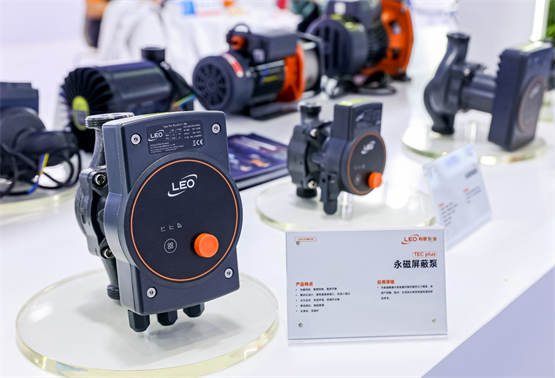 在暖通应用端,利欧推出全新一代家用暖通OEM解决方案,其中INT系列永磁屏蔽泵专为热泵主机、水力模块及混水中心配套定制。该系列采用高效永磁同步ECM电机,EEI低至0.18,远超欧盟最新ErP指令要求。紧凑型设计与预置功能使其安装简便,兼容多种标准与接口;控制面板支持多方向安装,可灵活应对热泵内部狭窄空间。产品采用永磁屏蔽水冷结构,无需风扇散热,运行噪音低至40dB,并配置防干转、防堵转、防过压欠压等多重保护功能,兼顾舒适体验与运行安全。