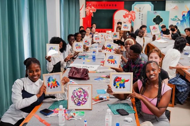 人文学院与艺术设计学院专场中,华珠书法与艺术设计专业师生指导肯尼亚青年体验毛笔书法与马年主题剪纸,运用月牙纹、锯齿纹等传统纹样进行创作,现场展示了“中非一家亲”书法作品。与此同时,肯尼亚青年向华珠学生介绍了本国传统编织工艺、部落图腾艺术以及斯瓦希里文化的口头文学,分享了青年如何通过手工艺合作社实现经济赋权的真实案例。中非双方在文化体验中深化理解、双向共融。