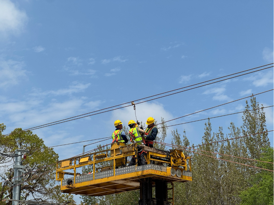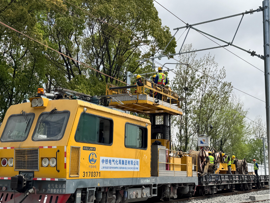 试车线接触线的成功架设,验证了项目团队施工方案与技术准备的充分性与可靠性,不仅为后续试车线的冷滑试验、送电及热滑调试提供了先决条件,也为全线后续各类接触网线索架设树立了可复制、可推广的“施工样板”。(作者:贾孟菡 摄影:汪黄英子)