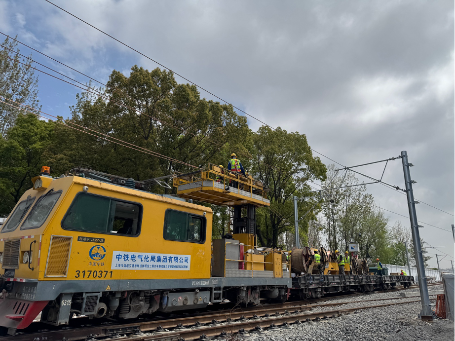 4月18日,由中铁电气化局集团上海电气化工程分公司承建的上海轨道交通22号线(崇明线)四电集成项目东靖路车辆段试车线首条接触线成功架设,标志着该段接触网施工正式进入攻坚阶段。