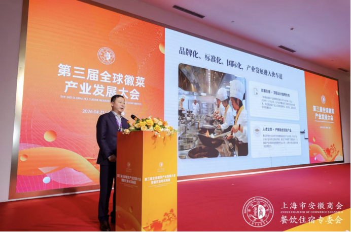 4月21日,第三届全球徽菜产业发展大会暨餐饮食材采购展在上海宝山举行。会议由上海市安徽商会指导,商会餐饮住宿专委会主办,曼格纳(上海)酒店管理有限公司承办,安徽广播电视台提供战略合作媒体支持。徽菜食材、调味品、预制菜、餐饮设备、酒水等相关领域104家企业参展,专业观展人数达到3000人以上。
